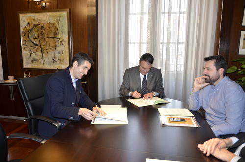 L’alcalde de Manresa, Valentí Junyent, i el representant de l’entitat Club Bàsquet Manresa 2015, Sebastià Catllà, han rubricat l’acord aquest matí. A l’acte també hi ha assistit el regidor d’Esports, Jordi Serracanta.