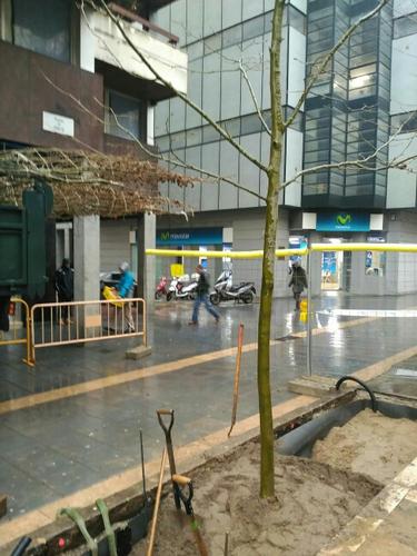 Quatre dies després de la tala de cinc plàtans malalts al Passeig, aquest matí han començat els treballs de plantació de cinc nous exemplars. Es preveu que durant els propers tres anys, 46 plàtans siguin substituïts.