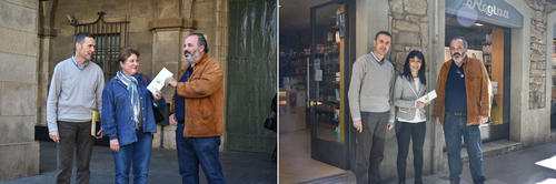 El regidor de Turisme i Festes, Joan Calmet; i Jordi Puigarnau, de l’empresa Viatges Caditravel, han lliurat avui els premis a Rosa Maria Puigdellívol de la Perfuferia Regina (millor aparador) i Maria Pilar Alquézar (millora fotografia).