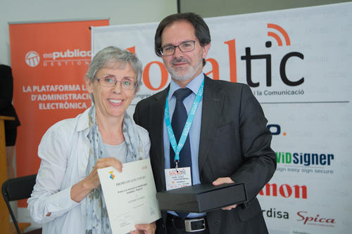 En el Congrés LOCALTIC, que s’ha celebrat a Cunit, s’han reconegut 13 administracions locals de Catalunya per la seva innovació en diversos àmbits tecnològics. Montserrat Morera, del Servei de Tecnologies i Sistemes d’Informació de l’Ajuntament de Manresa, va ser l’encarregada de recollir el premi.
