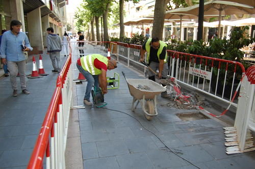 El 6 de juny passat va començar la primera fase d’una actuació global que té l’objectiu de reposar aproximadament 600 peces trencades del paviment dels laterals del primer tram del Passeig, i amb un cost de 23.000 euros. La majoria de les peces trencades que estan sent substituïdes ho estan a causa del trànsit de camions que fan tasques de càrrega i descàrrega per als comerços i restaurants que hi ha en aquest espai cèntric.