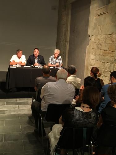 L'alcalde de Manresa, Valentí Junyent; el president del CEB, Francesc Comas; i el director de l’Arxiu Comarcal del Bages, Marc Torras, han presentat el llibre històric d'un professor nord-americà reeditat en català amb el títol Auge i declivi d’una burgesia catalana. Manresa a la baixa edat mitjana 1250-1500.