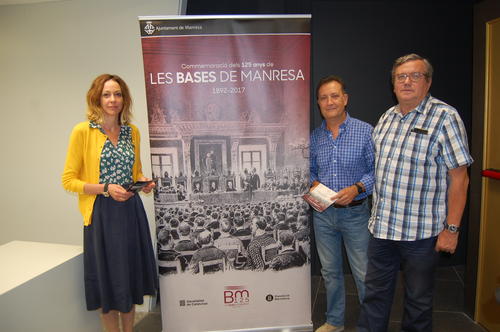 Els comissaris de la commemoració, Francesc Comas i Jordi Rodó, juntament amb la regidora Àuria Caus, han presentat avui els actes previstos per als propers mesos, que s’han iniciat amb una bustiada a tota la ciutat sobre les Bases de Manresa i que culminarà la primavera del 2018 amb una gran exposició produïda per la Diputació i diverses conferències a Barcelona.