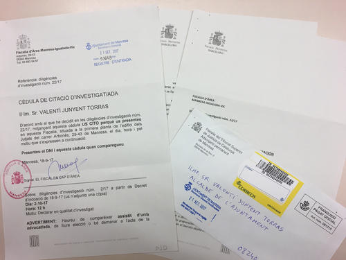 Aquest matí l'alcalde ha rebut, a l'Ajuntament de Manresa, una citació de la fiscalia de l'àrea de Manresa, Igualada i Vic, que el cita a declarar, als jutjats de Manresa (carrer Arbonés), el dia 2 d'octubre, a les 12 el migdia.
