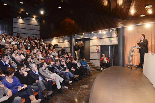 L’Auditori de la Plana de l’Om s’omple per escoltar els arguments dels tècnics sobre aspectes urbanístics, patrimonials, funcionals i econòmics de cara a la consulta per decidir el futur de l’edifici del teatre, que es farà els dies 10 i 11 de maig.