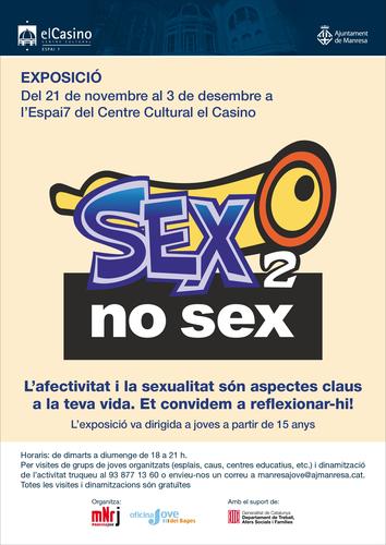 Del 21 de novembre al 3 de desembre, l’Espai7 del Casino acollirà la mostra Sex o No Sex, organitzada per l’Oficina Jove del Bages, amb l’objectiu de treballar temes de sexualitat i afectivitat amb els joves Manresans. L’exposició està oberta a tots els públics però va especialment adreçada a joves a partir de 15 anys. L’horari per visitar-la de forma lliure serà de dimarts a diumenge de 18 a 21 h.