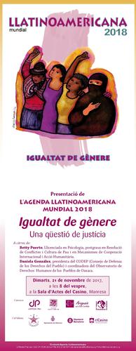 El proper dimarts, 21 de novembre, tindrà lloc a la Sala d’Actes del Casino la presentació de l’agenda llatinoamericana mundial 2018. L’acte, que començarà a les 8 del vespre, comptarà amb dues dones compromeses, activistes i que han viscut en primera persona què vol dir ser dona als moviments socials.