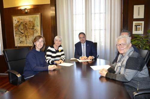 L’alcalde de Manresa, Valentí Junyent, i la presidenta sortint de l’Associació de familiars de malalts d’Alzheimer i altres demències del Bages, Berguedà i Solsonès, Maria Rosa Riera, han signat avui un conveni de col·laboració adreçat a millorar la qualitat de vida de les famílies i dels propis afectats per aquesta malaltia. L’acte de signatura ha comptat amb la presència de la nova presidenta de l’entitat, Josefina Rovira, i la regidora de Salut de l’Ajuntament de Manresa, Mercè Rosich.