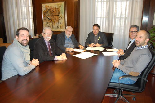 El conveni ha estat signat per l’alcalde de Manresa, Valentí Junyent, i el director-gerent d’Aigües de Manresa, Josep Alabern, amb la presència dels regidors d’Urbanisme i Llicències, Marc Aloy; Qualitat Urbana, Mobilitat i Serveis, Jordi Serracanta; i Hisenda, Josep Maria Sala.