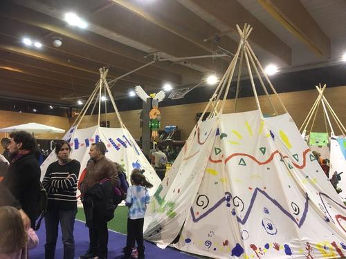 Els infants i joves també han pogut fruir de nombrosos tallers repartits en tendes índies en un autèntic poblat apatxe muntat a la zona central del pavelló. A més, aquet any han pogut gaudir del desert texà amb un sorral on havien de trobar pelletes d’or, un cactus al qual encertar unes anelles, un planetari on descobrir els vastos cels nocturns de l’oest, un saloon amb jocs per als nois i noies de més edat, una granja i un “toro loco” que han transportat els participants fins al Far West.