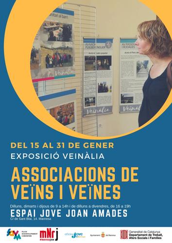Del 15 al 31 de gener l’exposició itinerant Veinàlia, que mostra el recorregut de les associacions de veïns de la ciutat de Manresa, farà estada a l’espai central de l’Oficina Jove del Bages situada a l’equipament municipal Espai Jove Joan Amades (C/ sant Blai, 14).