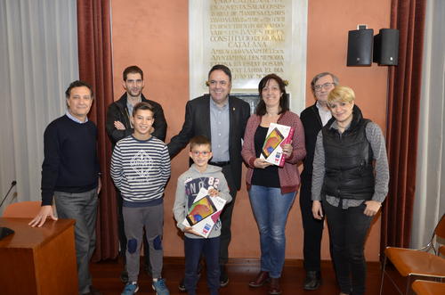 Pau Santasmasas Vall i Gemma Casals Felip han recollit avui la tauleta que han guanyat de mans de l’alcalde, Valentí Junyent, després d’haver estat elegits per sorteig entre la vintena de participants que van completar amb èxit totes les proves.