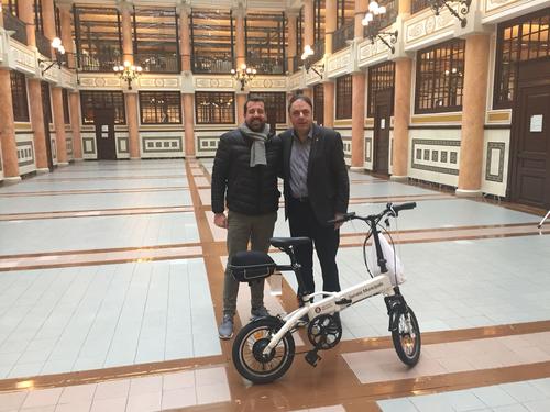 El regidor de Qualitat Urbana i Serveis, Jordi Serracanta, va rebre ahir de mans de Valentí Junyent, en l'exercici del seu càrrec de diputat d'Espais Naturals i Medi Ambient de la Diputació de Barcelona, dues bicicletes elèctriques que, a petició dels propis serveis, aniran destinades al Centre d’Incitatives per a l’Ocupació (CIO), a la casa Caritat, i al servei de Recursos Humans, a La Florinda.