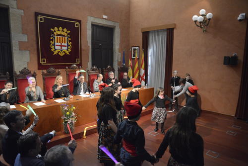Un cop finalitzada la interpretació del pregó, l’alcalde de la ciutat ha lliurat un obsequi d’una reproducció de l’escultura La Ben Plantrada de Josep Clarà als alumnes i també a les dues directores de les escoles, Gemma Guerra i Clara Molina.