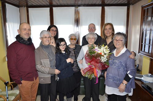La regidora de Festes i Projecció de Ciutat, Neus Comellas, li va lliurar ahir un obsequi i un ram de flors per celebrar el seu centenari.