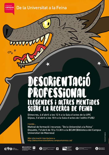 Amb el títol “de la Universitat a la Feina”, els dies 4, 5 i 7 d’abril tindran lloc unes jornades enfocades a superar la desorientació professional i donar eines i recursos que facilitin l’entrada al món laboral.