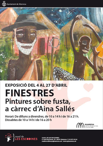 El Casal de les Escodines acollirà l’exposició de pintures Finestres, de l’artista manresana, Aina Sallés, que consta de diferents obres sobre fusta realitzades durant els darrers dos anys. Es poden veure paisatges coneguts com Montserrat, altres de llunyans com Guinea Bissau i alguns de més personals fruit de la seva imaginació.