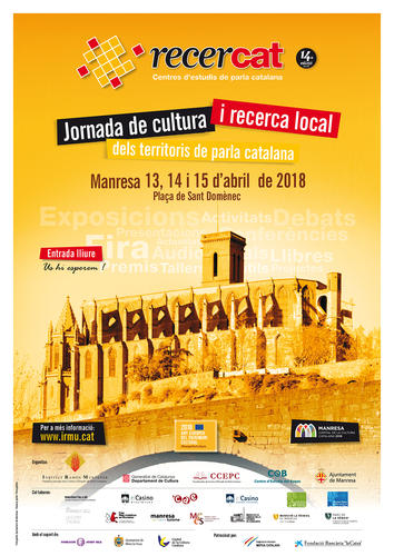 La ciutat de Manresa, en la seva condició de Capital de la Cultura Catalana 2018, acollirà entre els dies 13 i 15 d’abril la catorzena edició del Recercat. Jornada de Cultura i Recerca Local dels territoris de parla catalana. L’activitat està organitzada per l’Institut Ramon Muntaner (IRMU), la Coordinadora de Centres d’Estudis de Parla Catalana i el Departament de Cultura de la Generalitat de Catalunya, el Centre d’Estudis del Bages i l’Ajuntament de Manresa.