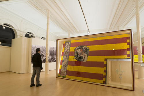 La presidenta de la Diputació de Barcelona, Mercè Conesa; i l'alcalde de la ciutat, Valentí Junyent, inauguren la mostra aquest dijous a la tarda la seu central de la corporació provincial. La bandera de la Unió Catalanista, una de les peces més importants del patrimoni tèxtil modernista català, és el tresor de l'exposició, que ja s'ha pogut veure a Manresa i que es podrà visitar a la capital catalana fins el 14 de juliol.