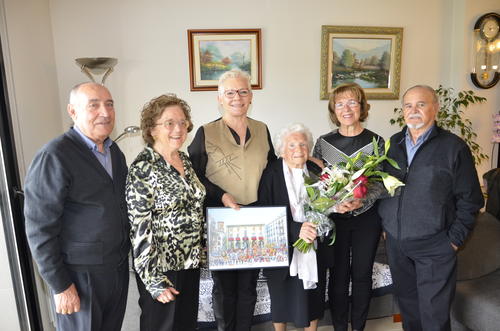 La regidora delegada de la Gent Gran, Mercè Rosich, li ha lliurat aquest matí un obsequi i un ram de flors per celebrar el seu centenari.