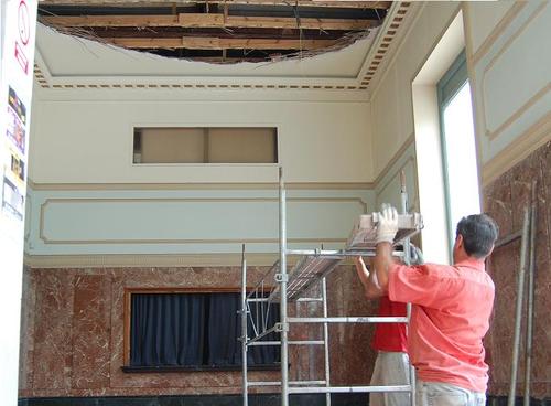 L’Ajuntament de Manresa ha iniciat avui dilluns els treballs de reparació i substitució del fals sostre situat al vestíbul del Teatre Conservatori, una part del qual es va esfondrar el 29 de juliol passat. L’actuació té un cost de més de 9.200 euros i suposa la substitució de tot el fals sostre per materials més adequats i menys pesants. Els treballs estaran enllestits abans del divendres 29 d’agost, data en què el teatre reprendrà l’activitat amb l’obra “Recordant Pepe Rubianes” amb l’actor Jaume Mallofré com a protagonista.