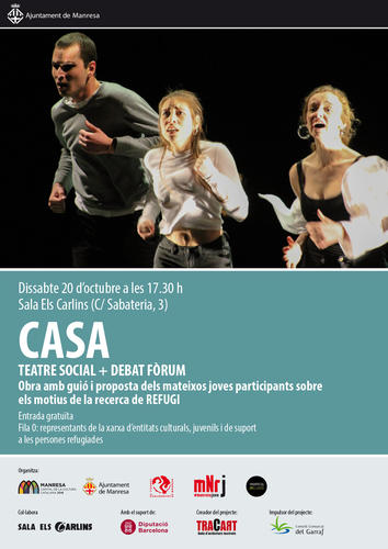 El proper dissabte, 20 d’octubre a les 17.30 hores, tindrà lloc al teatre dels Carlins l’obra social “Casa”. La representació, que és gratuïta, arriba a la capital del Bages en el marc d’una iniciativa conjunta entre els Programes de Joventut, Cooperació, Inclusió Social i la Regidoria de Cultura de l'Ajuntament de Manresa.