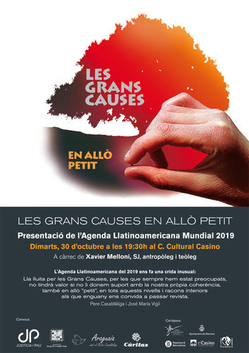 El proper dimarts 30 d'octubre es presentarà a Manresa l'Agenda Llatinoamericana Mundial 2019, que enguany té com a lema “Les grans causes en allò petit”. L’acte, que es durà a terme a les 7.30 de la tarda a la Sala d’Actes del Centre Cultural el Casino, anirà a càrrec de Xavier Melloni, SJ, antropòleg i teòleg.