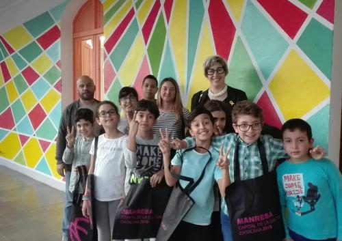La Mariam Labriga, l’Aaron i la Nerea Gimenez, la Nabila Rakba, l’Isare i la Rihab Amri-El Gharbhoui, i la Fatima El Baghati, alumnes d’entre 8 i 11 anys del grup de reforç escolar d’Invulnerables; i el Sulayman Akhazzan, la Noar Jtait, la Maisae ElKhamal, el Walid Sellami, l’Abdellah i la Mariam Haddouthi, l’Aymane Mojahid, el Youssef Kadri i el Salim Rouam, membres de les classes d’àrab (Associació Cultural Islàmica de Manresa) d’entre 7 i 9 anys, han estat els petis artistes que han omplert de color i fantasia la paret.