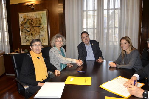 L’alcalde de Manresa, Valentí Junyent, i la directora de Càritas Diocesana de Vic – Arxiprestal de Manresa, Josefina Farrés, ha signat tres conveni de col·laboració per al funcionament del projecte de masoveria urbana, per al servei d’acollida social i per al desenvolupament del projecte d’acollida i inserció social “Activa’t per viure de l’hort”. L’acte de signatura ha comptat amb la presència de la regidora d’Ocupació i Emprenedoria de l’Ajuntament de Manresa, Cristina Cruz Mas; i la representant de Càritas, Maria Antònia Gros.