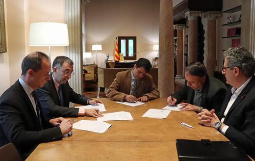 L’alcalde de Manresa, Valentí Junyent, ha signat aquest dimarts amb el president de la Diputació de Barcelona, Marc Castells, un crèdit per valor de 7.256.331 €, dels quals 238.494,33 € estan subvencionats per la corporació. Per part de BBVA també han signat el director d'Institucions, Jordi Cluet, i el director de Relació Local, Joan Ferrer.