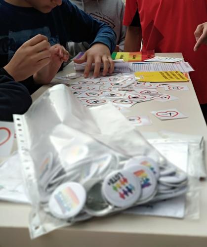 Per completar la campanya s’ha repartit informació i recursos sobre temes d’interès en relació al col·lectiu i s’ha obsequiat als i les participants amb xapes amb motius LGTBI.
