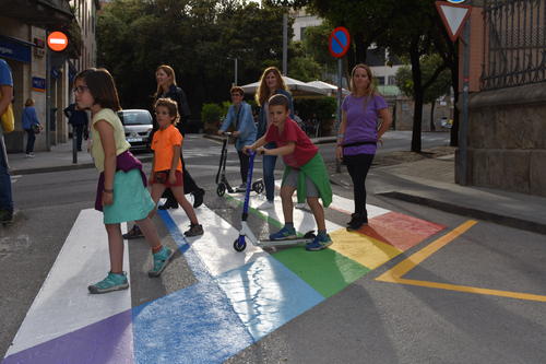 L’Ajuntament de Manresa ha pintat un pas zebra del carrer Arquitecte Oms, al costat del Casino, amb els colors de la bandera de l’arc de Sant Martí, que simbolitza les reivindicacions del col·lectiu LGTBI, per sensibilitzar la ciutadania en favor d’una actitud de tolerància cap a la diversitat de gènere.