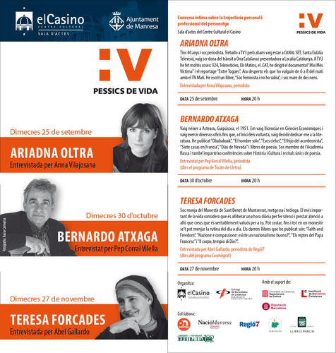 L’Ajuntament de Manresa i la Demarcació Catalunya Central del Col·legi de Periodistes de Catalunya organitzen conjuntament el cicle “Pessics de vida”, un espai de conversa amb personalitats destacades del país.
