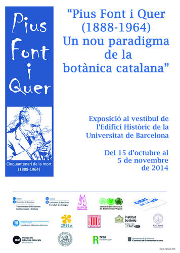 Aquest dimecres, 15 d’octubre, s’inaugura l’exposició "Pius Font i Quer (1888-1964). Un nou paradigma de la Botànica Catalana" al vestíbul de l'Edifici Històric de la Universitat de Barcelona (Gran Via de les Corts Catalanes, 585, Barcelona).