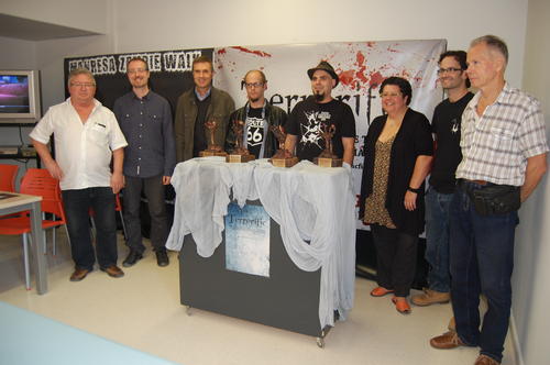 La “Zombie Walk” i “Terrorífic” han estat presentats avui pel regidor de Cultura de l’Ajuntament de Manresa, Joan Calmet; i els representants de l’associació de cinema Lokuos Films, Daniel Garcia i Xesco de los Santos Juárez. Els han acompanyats membres de les diferents entitats col·laboradores de l’esdeveniment.