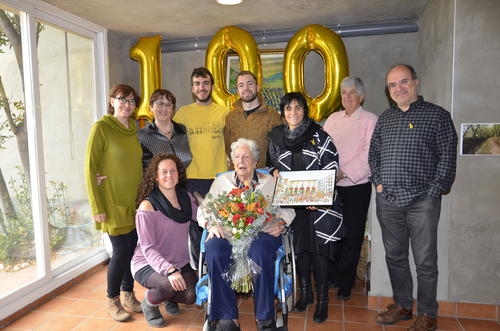 La regidora delegada d’Infància, Joventut i Persones Grans, Rosa M. Ortega Juncosa, li ha lliurat un obsequi i un ram de flors per celebrar el seu centenari.
