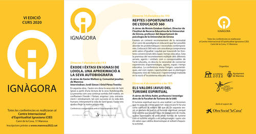A partir del proper 7 d’octubre es recuperen les tres altres conferències que no es van poder celebrar, també en dimecres, a les 7 de la tarda i, com sempre, al Centre d’Espiritualitat Ignasiana (CIEI).