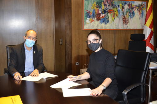 L’alcalde de Manresa, Marc Aloy Guàrdia, i la presidenta de la Unió de Botiguers i Comerciants (UBIC) de Manresa, Tània Infante, han signat avui un conveni pel qual es regulen les condicions d’atorgament d’una subvenció per un import de 32.500 euros per a les activitats de dinamització comercial que desenvolupa l’entitat comercial a la ciutat. L'acte de signatura va comptar també amb la presència de la regidora de Comerç i Activitats, Núria Masgrau Fontanet.