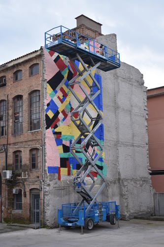 La idea del mural, que forma part del projecte MUR, parteix del concepte de barri, en un format conceptual similar al realitzat a l'església de Sant Joan Baptista de Penelles (la Noguera) i a un edifici de Sant Joan d'Alacant (València), on l’artista contemporani va transportar amb plans de colors patrons dibuixats per l'edificació, com les façanes o altres elements arquitectònics.