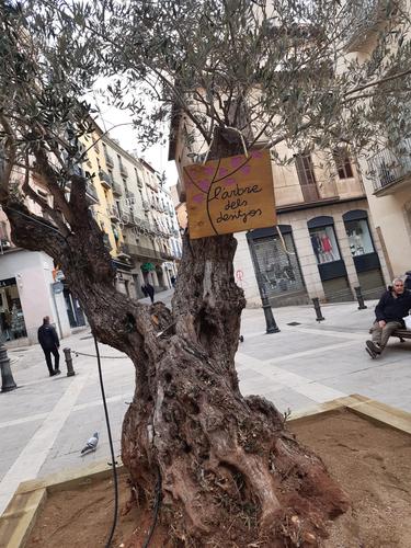 Es tracta d’una olivera que s’ha col·locat a la Plana de l’Om i que un cop acabat el període nadalenc es plantarà a la plaça de la Mel. Tothom hi podrà penjar els seus desitjos per al 2021. A més a més, els comerços del Centre Històric repartiran targetes i cordills entre la clientela.