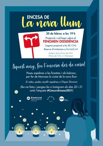 Davant la impossibilitat d’encendre milers d’espelmes al centre històric com era habitual en les edicions de l’Encesa prèvies a la pandèmia, Òmnium Bages-Moianès fa una crida a fer-la des de casa i demana a la ciutadania que encengui espelmes a les finestres, als balcons i a les terrasses de les cases de Manresa, el vespre de la vigília de la Llum (20 de febrer).