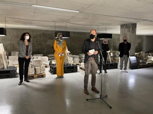 Manresa ha inaugurat aquest matí un espai molt singular que casa art i memòria històrica, i que convida a reflexionar entorn de l’origen, la continuïtat i la destrucció del patrimoni en moments de conflicte. En aquest cas, de patrimoni de la ciutat que es va destruir durant la Guerra Civil. Es tracta del magatzem lapidari del Museu de Manresa, ubicat a la plaça de la Reforma, que des d’avui serà visitable a través d’una intervenció de Jesús Galdón Martínez —titulada “El que diuen les pedres callen els arbres”— que l’artista ha ideat a partir de fragments d'escultures, claus de volta, sarcòfags, capitells, fusts, làpides i bases de columnes provinents dels enderrocs d’esglésies i convents gòtics i barrocs que es van fer a la ciutat el 1936, en ple període revolucionari.
