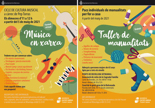 El proper mes de maig de 2021 es reprendran els tallers musicals i de manualitats adreçats a les persones grans en un format adaptat a les restriccions.