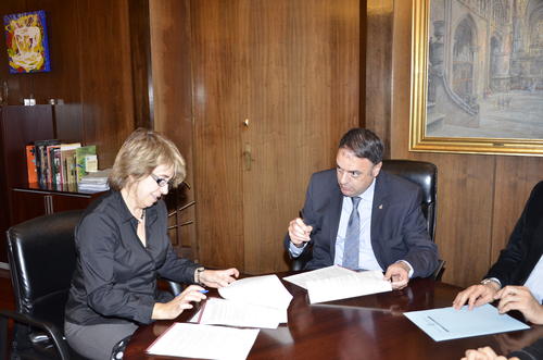 L’alcalde Valentí Junyent i la directora general d’Apip-Acam, Montserrat Font, va signar ahir el conveni per continuar treballant i donant suport a les persones usuàries dels serveis socials municipals.