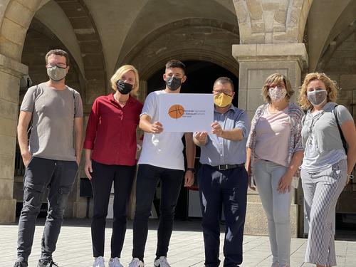 La imatge gràfica que representarà a partir d’ara els actes de la capitalitat del bàsquet femení ha estat presentada a l’Ajuntament de Manresa pel regidor d’Esports, Antoni Massegú Calveras; el creador del logo, Biel Martínez Lacruz; les representants del comitè organitzador Gemma Vilaseca González (Bàsquet Oms), Imma Torrecillas Gómez (AE Salle Manresa) i Montserrat Xixons Fortuño (exjugadora), i el director de l’Escola d’Art de Manresa, Dani Hernández Massegú.