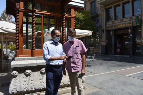 A la imatge, el regidor de Qualitat Urbana, Via Pública i Ciutat Intel·ligent, Josep Gili Prat, i el regidor de Turisme i Projecció de Ciutat, Joan Calmet Piqué, a la plaça Sant Domènec, un dels punts amb accés gratuït a Internet.