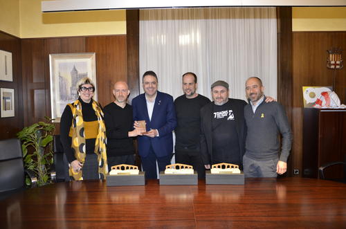 El dia 13 de febrer de 2020, els tres directors van ser rebuts per l’alcalde de Manresa i van signar el Llibre d’Honor de l’Ajuntament de Manresa. En aquell acte van manifestar la seva voluntat de cedir l’estatueta per expressar la seva gratitud a la ciutat pel suport en la realització de la pel·lícula. I van valorar satisfactòriament la decisió consensuada de col·locar l’estatueta a la plana de l’Om, un lloc amb significació especial per ells per ser on té lloc el programa de CineClub, l’entitat on es van iniciar com a cinèfils i com a cineastes.