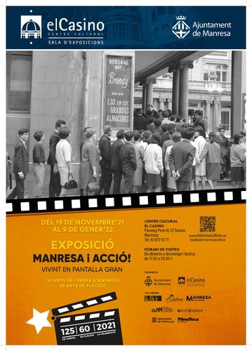 Sota el títol de “Manresa i Acció!, Vivint en pantalla gran” s'inaugura el proper divendres, 19 de novembre, a les 7 de la tarda, a la Sala Gran del Centre Cultural del Casino, una exposició que mostra la història de la relació de la nostra ciutat amb el cinema, des de la primera projecció l'any 1896, fins a l'actualitat. L’exposició es podrà visitar fins al 9 de gener de 2022, de dimarts a diumenge de 17.30 a 20.30 h.