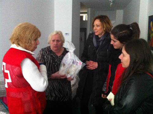 La regidora de Gent gran de l’Ajuntament de Manresa, Àuria Caus, va acompanyar divendres passat voluntaris de Creu Roja per fer el lliurament a dues de les persones seleccionades.