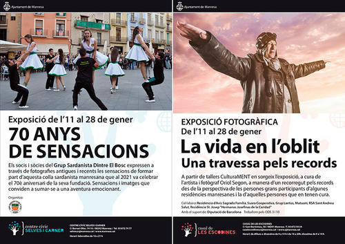 “La vida en l’oblit: una travessa pels records” farà estada al Casal de les Escodines, i “70 anys de sensacions” al Centre Cívic Selves i Carner. Ambdues exposicions es podran visitar fins al 28 de gener.